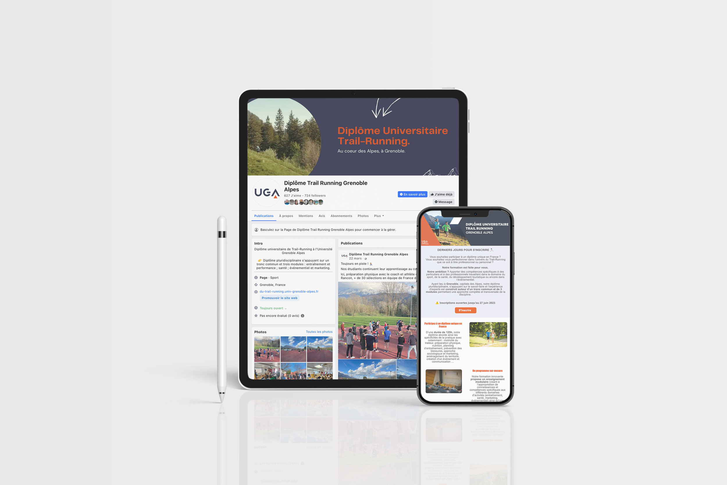 Pour renforcer la visibilité du diplôme universitaire de Trail-Running, nous avons mis en place une stratégie de communication digitale. En combinant l'utilisation de canaux digitaux tels que les réseaux sociaux (Facebook et Instagram), les newsletters et les annonces publicitaires en ligne, nous avons réussi à toucher efficacement notre cible et à faire connaître la formation à un public plus large. Notre approche visait à positionner le diplôme comme une référence dans le domaine du Trail-Running.