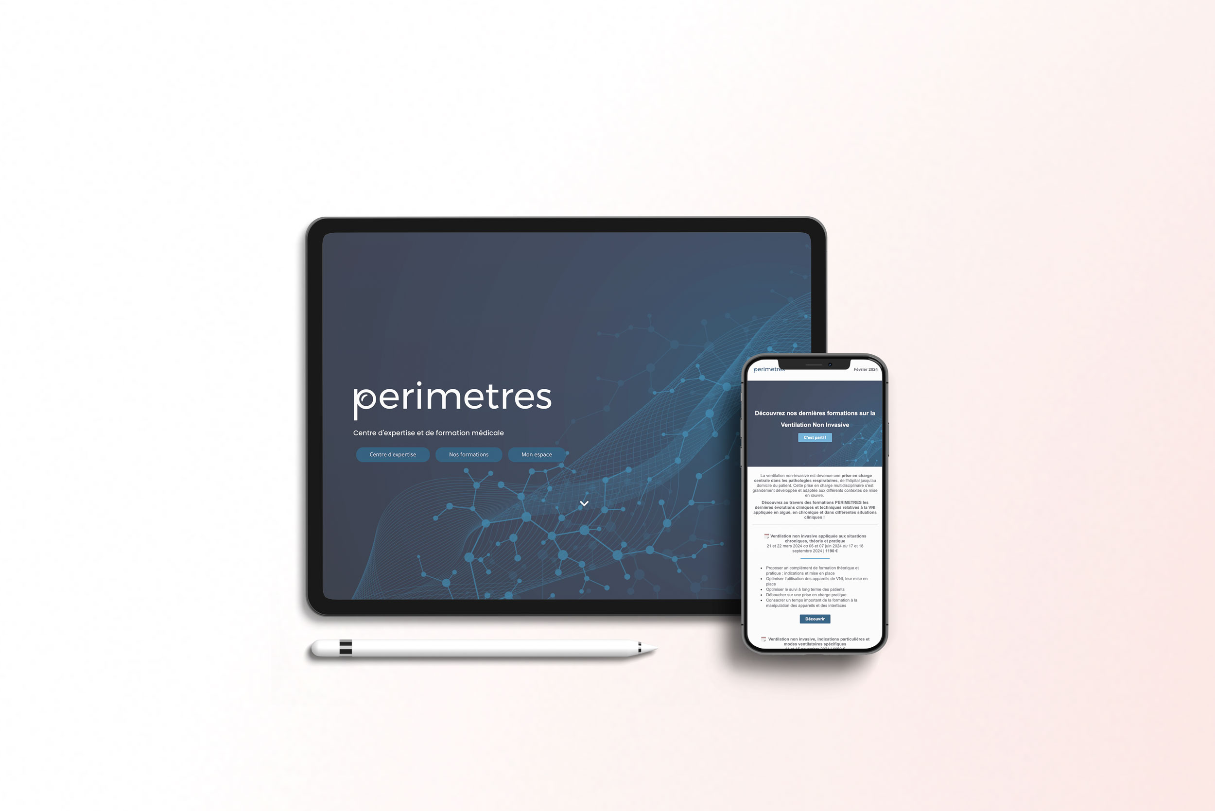 Nous avons élaboré une charte graphique sur mesure pour PERIMETRES, intégrant des éléments esthétiques spécifiques au domaine médical (logo, identité visuelle,...) et mettant en avant son professionnalisme. Cette charte garantit une identité cohérente et attrayante sur tous les supports de communication.